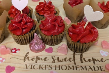 Celebrate Valentine's Day with my mini bite-size chocolate and banana cupcakes, topped with smooth, velvety red buttercream frosting.